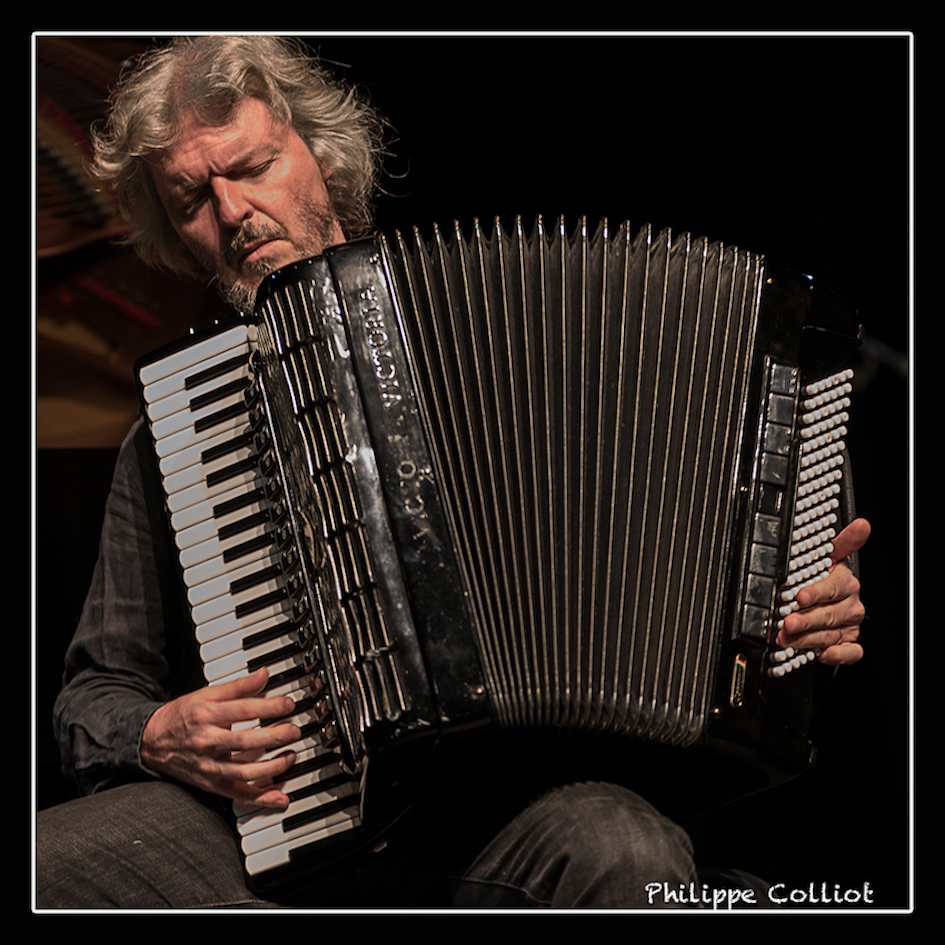Il a enregistré deux CD de ses musiques pour accordéon seul : le Troisième jour et Silence on tourne, qu’il joue en concert en France, Suisse, Japon, Québec, Italie, Allemagne, Grèce. Il écrit pour la chanson (CD Les Petits Assassins et un cabaret avec Jean Pierre Simèon pour le théâtre, où il compose et joue avec Christian Schiaretti (CDN de Reims et TNP Villeurbanne), Jacques Nichet, (TNT de Toulouse), François Rollin (Lucernaire, Paris), Daniel Soulier, (Festival d’Avignon) Thierry Bèdard (TNS Strasbourg et La ferme du Buisson). Il compose des musiques originales pour le CD le Temps haletant et autres poèmes sur des textes de Prévert dits par Jacques Bonnaffé, met en musique des poèmes de Brecht pour le comédien et metteur en scène Emmanuel Houzè, ainsi que des poèmes de William Cliff (prix Goncourt de poésie) avec qui il se produit sur scène depuis 20 ans. Pour la danse contemporaine, il compose pour la chorégraphe Patrizia Lo Sciuto. Il collabore avec Georges Aperghis qui lui dédie Tingel Tangel. Il joue aussi dans Jojo (texte de Philippe Myniana Pendant plusieurs années il joue avec la violoniste Véronique Daverio. Il se produit régulièrement en récital avec la soprano Odile Heimburger pour qui il arrange les grands airs d’Opéra. Il arrange et joue une opérette d’Offenbach au festival d’Avignon ainsi que Tosca de Puccini avec la Cie Lyrique en Poche. Il forme un duo depuis 2008 avec la pianiste Madoka Ochi. Ils arrangent des musiques de Piazzolla, Ravel, Franck, Gershwin, Stravinsky, Moussorgski. Ils se produisent au Moulin d’Andé, aux festivals de Dinan, Richelieu, Mélomania à Paris, à l’Abbaye de la Lucerne. Ils font également des tournées au Japon et ont sorti un CD (Moussorgski-Ravel) « Deux » en 2017.Ils jouent la petite Messe Solennelle de Rossini avec le Chœur de chambre de Paris dirigé par Olivier Delafosse.